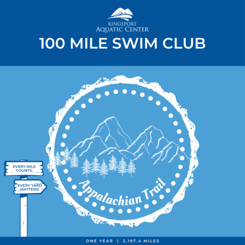 The Kingsport Aquatic Center is pleased to announce its latest destination for the 100-Mile Swim Club – The Appalachian Trail. The challenge calls for club members to work together by “traveling” on a 2,194-mile journey from Springer Mountain, Georgia to Mount Katahdin, Maine.